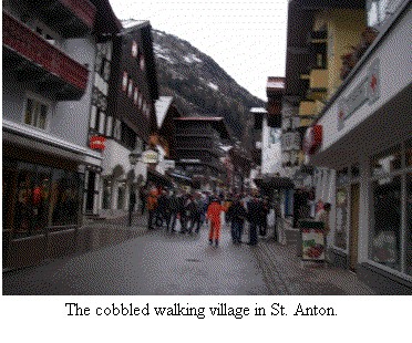 As a diversion, we boarded the St. Anton bus and spent the day foot touring that town. Much larger than Lech, I'll have to admit we found it to be more fun to explore. With a cobbled walking village (no cars allowed), similar to what we have here in Vail, the shopping was interesting and diverse - if not quite as upscale.